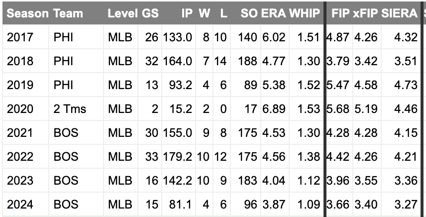 1. Nick Pivetta (BOS): 57.8 Strike%, 28.9 Ball%