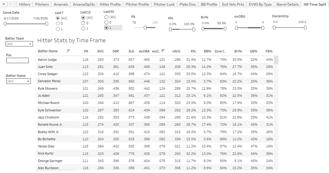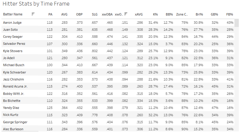 Zooming in on that table (it’s L30 data sorted by xwOBA with a 75 PA minimum):