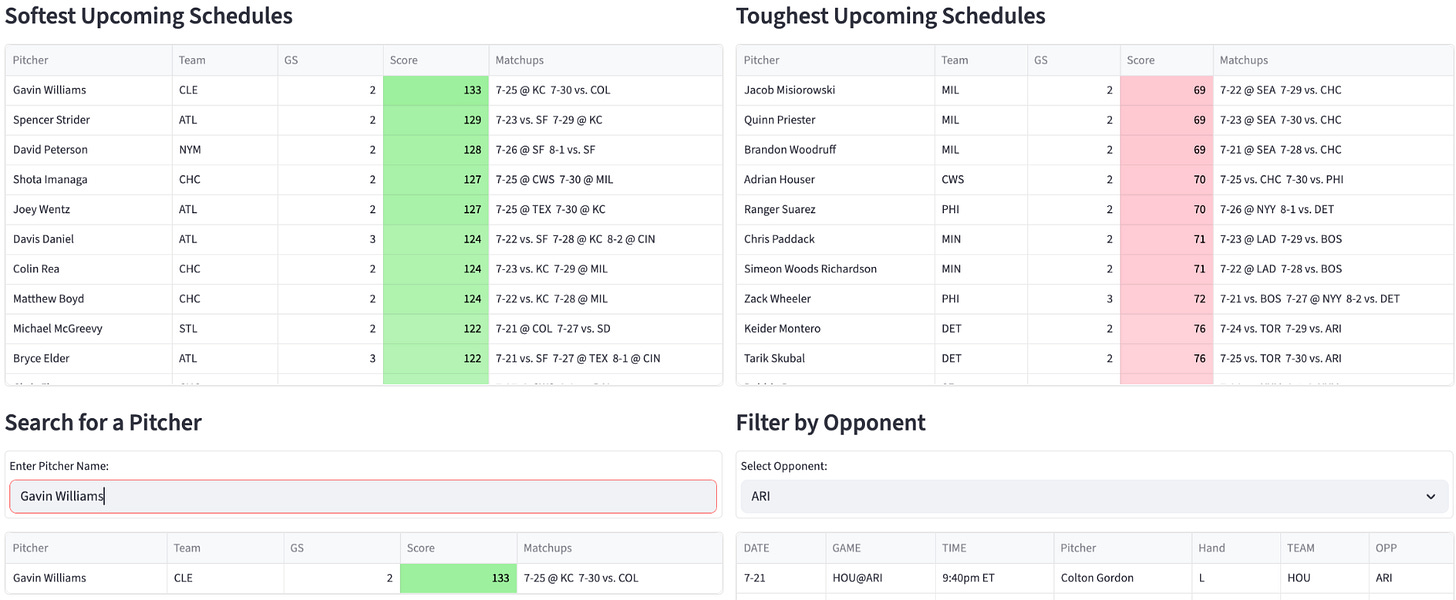 Other quite appealing upcoming schedules for pitcher who might be available for you: