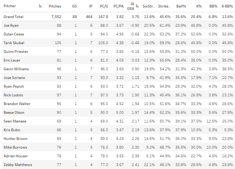 1. Joe Ryan (MIN): 61.4 Strike%, 23.9 Ball%