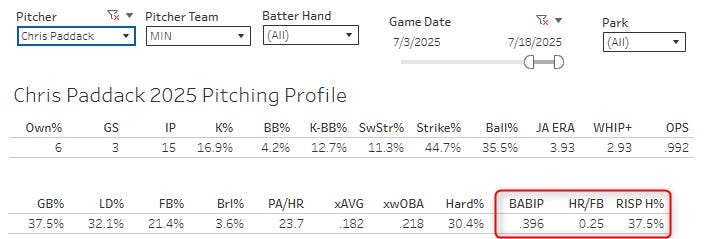 I have continued to develop the new Pitcher Luck stuff. This was something I should have had done a long time ago, but we’re getting there. The tools and reports have gotten better and better every year, and a lot of cool stuff has come out of this 2025 season. And this is a big one, and you’ll hear me mention this stuff a lot in the future.