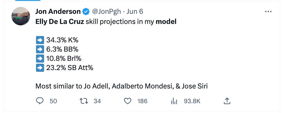 I’m not sure what to make of Abbott, but I think the correct choice is to just to default to the success he’s had and say he’s clearly a must-start guy in fantasy right now - just know that you’ll have to take a few of these 2+ HR allowed lumps along the way, just hope nobody is on base.