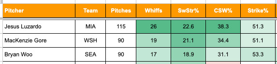 1. Jesus Luzardo (MIA): 26 Whiffs (115 Pitches)
