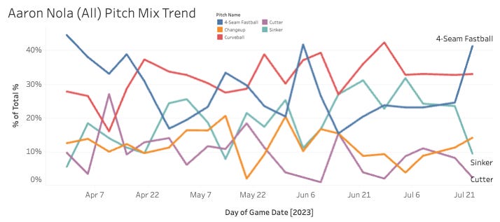 Aaron Nola's FF usage (41.2%) up 14.0 points