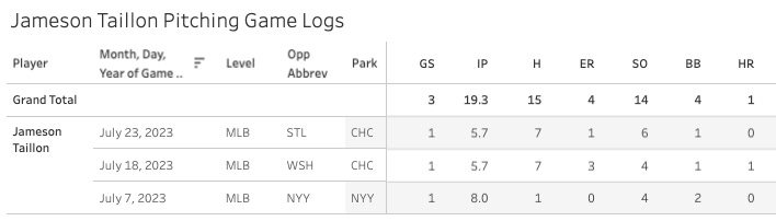 So I don’t think Taillon is good for standard fantasy leagues, but I don’t think he’s really a bottom-10% pitcher in the league like he was at the beginning of his season.
