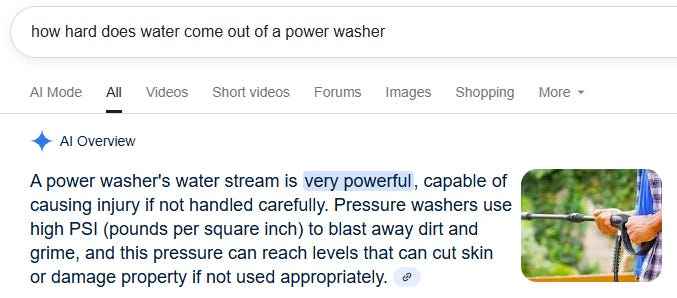 Before I typed that paragraph I googled how hard water comes out of a powerwasher so I could say a reasonable number, and the answer I got was just “very”.