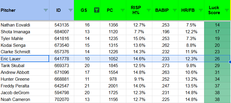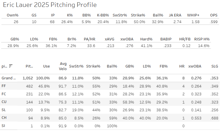 This Eric Lauer thing is simply out of hand. This is one of those situations where the new guy in your league who knows nothing about baseball analytics picked him up after a couple of good starts and got real cocky thinking he had something. And then all of the seasoned fantasy baseballers in the league are just like man, he has no idea what’s coming. But sometimes it never comes. And Lauer now has a 2.61 ERA, a 0.93 WHIP, and a 20.4% K-BB% in 69 innings. It’s remarkable.
