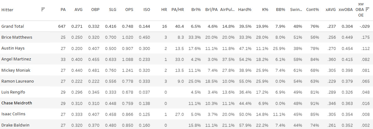 Do with that what you will. The people are asking me about Brice Matthews. He’s hit three dingers in this first week of the 2H. But he’s whiffing an absolute ton (56% Contact%), so the slumps are going to come hard and heavy. But he has real power, so he’ll have some of these spike games. But overall,l I wouldn’t want him on a fantasy team right now.