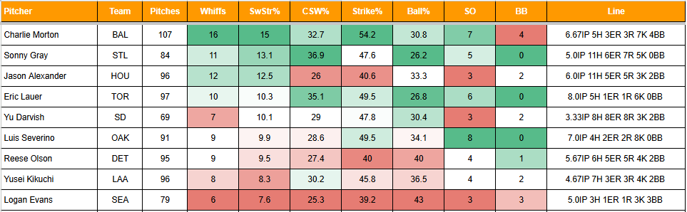 1. Charlie Morton (BAL): 16 Whiffs (107 Pitches)