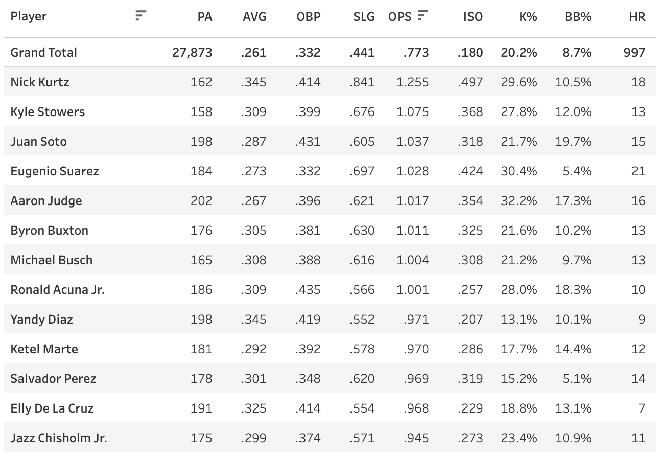 Kyle Schwarber - 109 PA, +13.5 Brl%