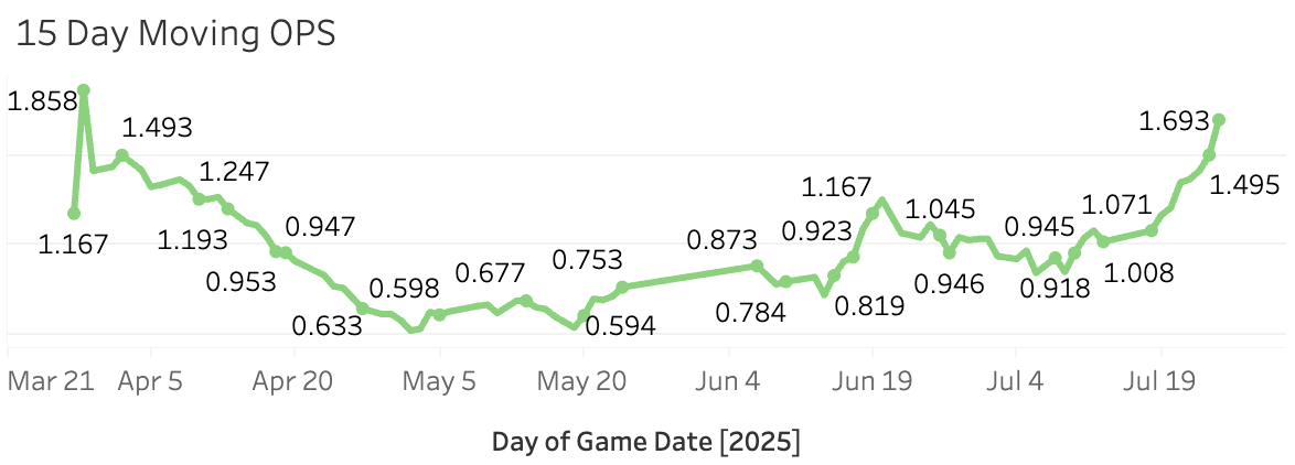 I like to forgive the first 100 career PAs. So, let’s do that. He had about 100 PAs before hitting the IL. Since his return from the IL: