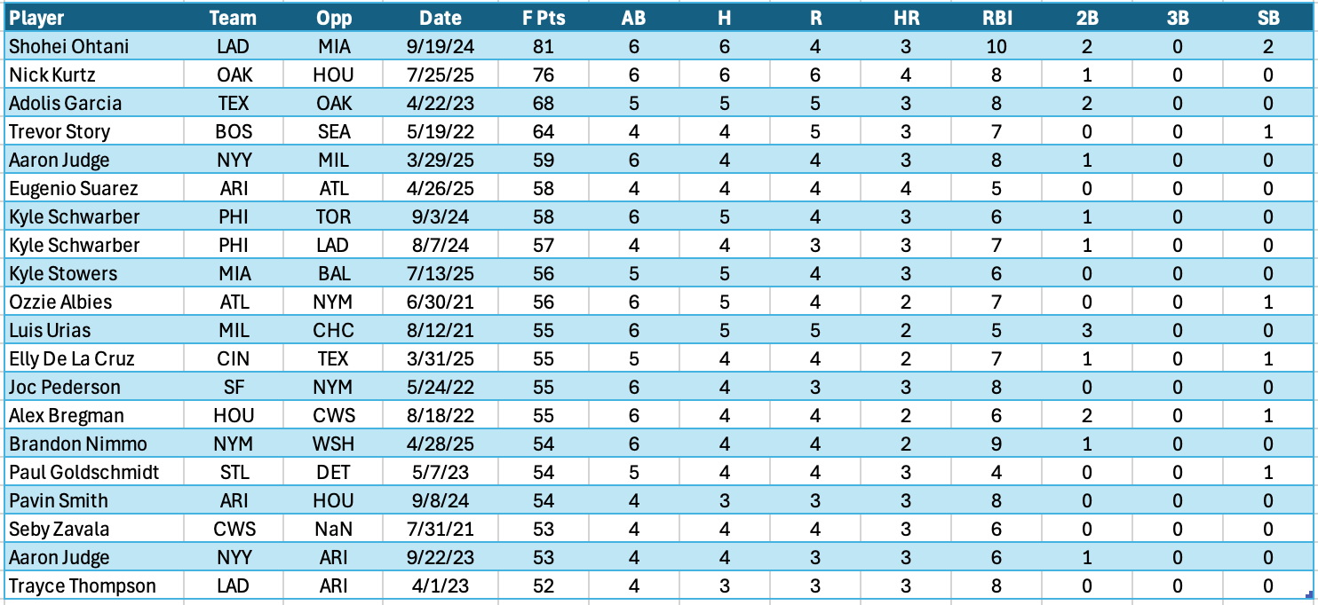 Nick Kurtz had the second-best hitter game of the last five years if you measure it by fantasy points scored using the DraftKings system. He went 6/6 with four homers and a double (which was almost a homer).