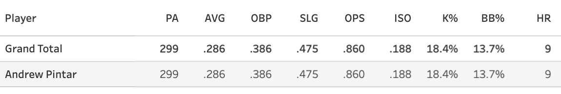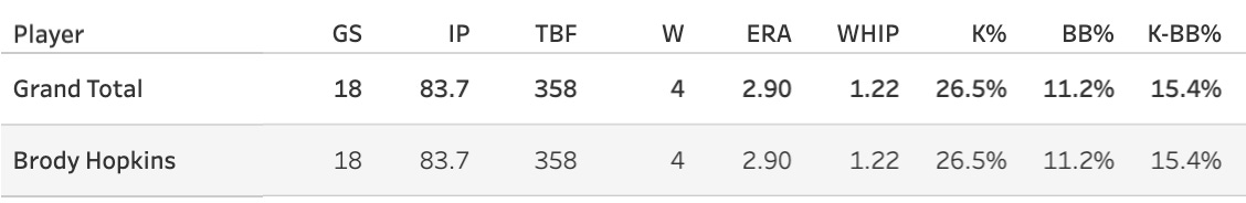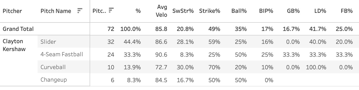 Elite 20.8% SwStr% led by the slider. The fastball was not good at a 25% Strike%, and the velocity has been under 91 for a few years now. It’s good to see the velocity wasn’t down further, but it’s tough to be really effective late into games when you only have one good pitch. But it’s Kershaw, he’s never in his career had an extended period of being bad, so I doubt it’ll happen this year.