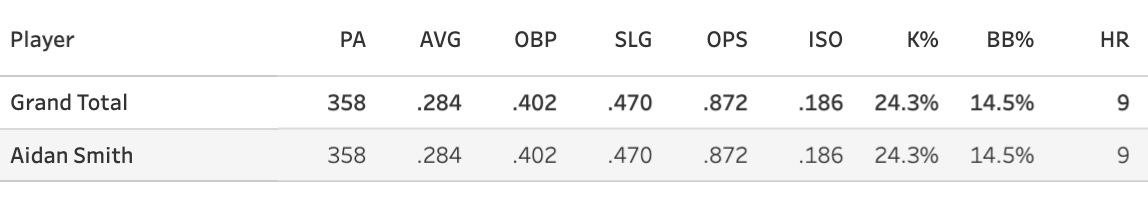 Max Schuemann - 72 PA, 0.456 wOBA, 0.348 xwOBA, -0.108 Diff