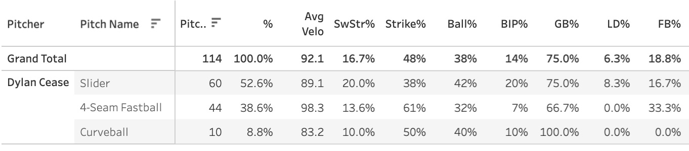 2. Dylan Cease: 114 Pitches, 26 Outs, 4.38 POUT