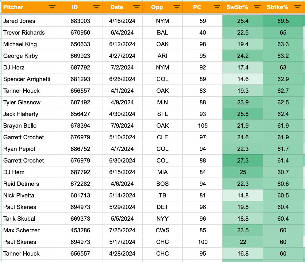 1. Max Scherzer (TEX): 60.0 Strike%, 27.1 Ball%