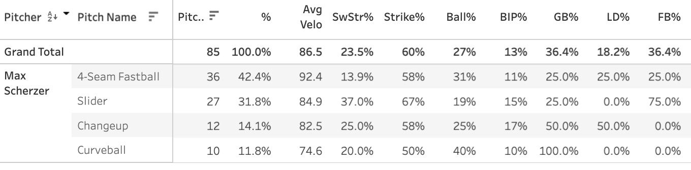 6. Max Scherzer: 85 Pitches, 17 Outs, 5.0 POUT