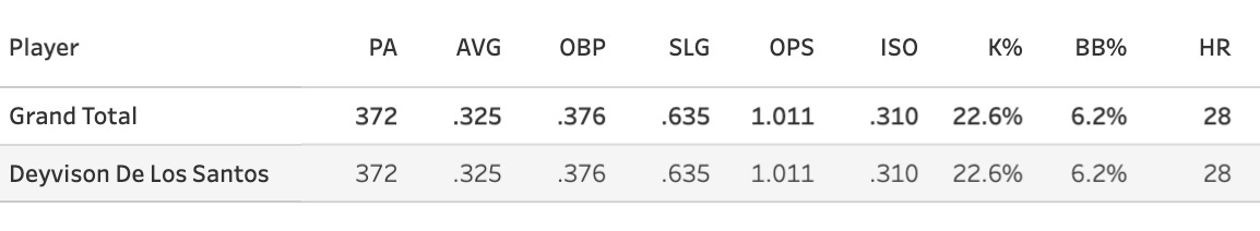 Javier Baez (DET) 4 PA, 7 Swings, 2 Barrels, 1 HR