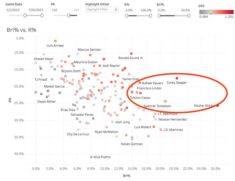 Shohei Ohtani - 51 PA, 23 BIP, 7 Brls, 30.4 Brl%