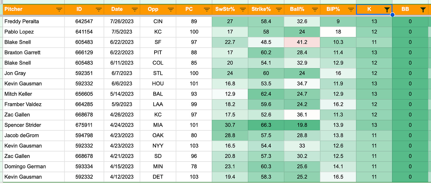 We can see there that Freddy Peralta went off. It was only the 16th time all year that a pitcher has gone 11+ strikeouts with no walks: