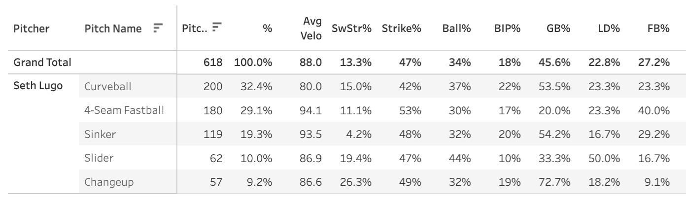 Seth Lugo's SI usage (28.6%) up 11.9 points