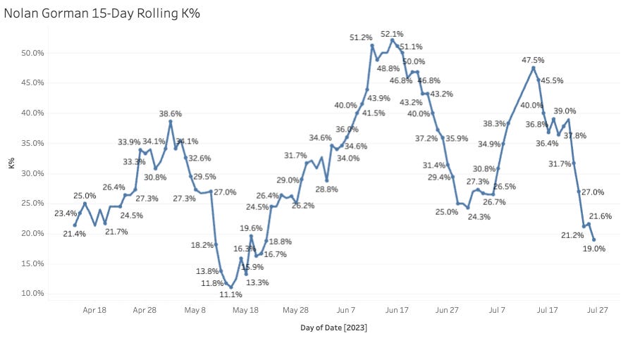 Nolan Gorman - 59 PA, 0.435 xwOBA