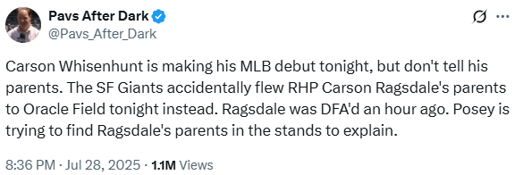 This doesn’t make a lot of sense to me. Carson Ragsdale is also in AAA, so that the mixup kind of makes sense. They were calling up a pitcher from AAA named Carson. But why would the Ragsdale’s accept the flight? Did they think their son was being called up too? Did they not check with Carson?