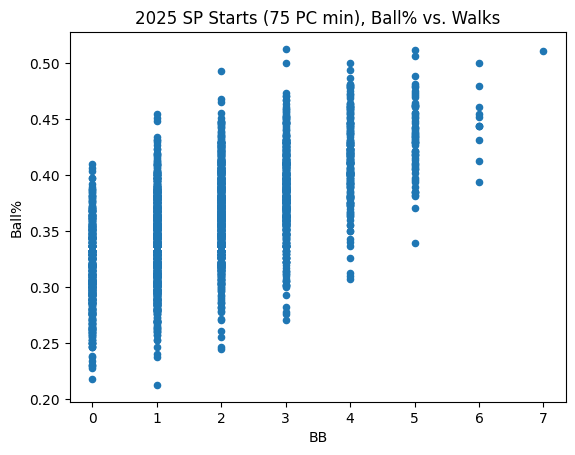 For some reason, here’s a Ball% vs. Walk Total plot using this year’s SP data:
