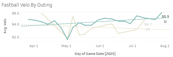 It was a really encouraging start for Schlittler in my book. He’s now sitting with a great 14.3% SwStr% and a 31.1% Ball%. That would suggest major improvement coming on both his 22% K% and his 13.2% BB%.