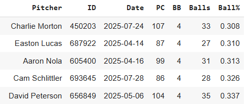 Cam Schlittler went for a 19.8% SwStr% and a 32.6% Ball! That’s impressive. Somehow he walked four batters on that 32.6% Ball%. That doesn’t make a lot of sense. It was the fourth-lowest ball rate for a start where the pitcher walked at least four batters.