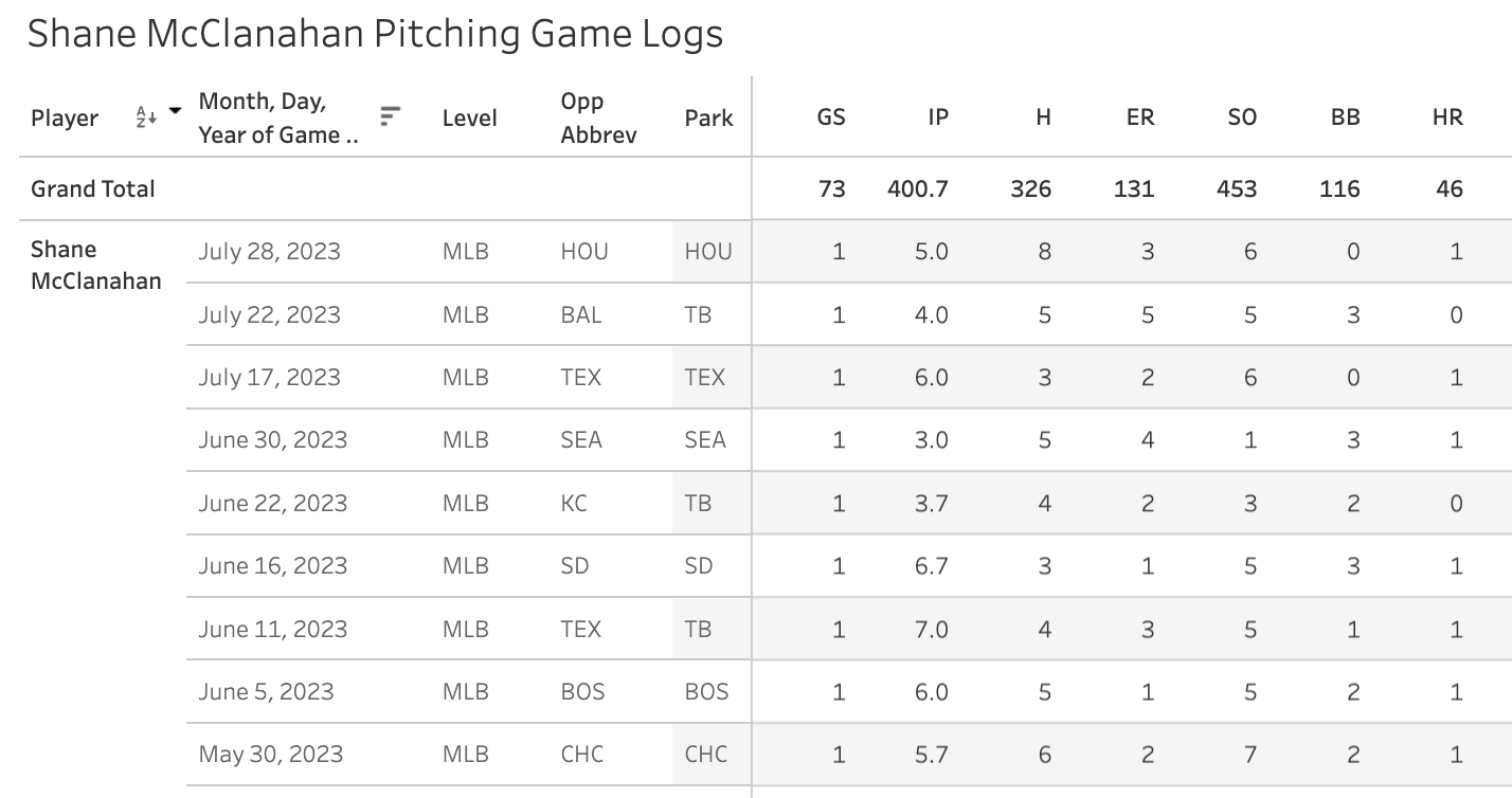 Shane McClanahan continues to be underwhelming. He’s given up multiple runs in all of his last five starts.