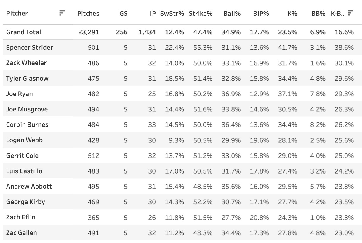 9. Zack Wheeler (PHI): 48.9 Strike%, 37.8 Ball%