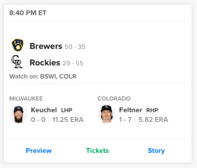 The Brewers are in Coors, and that sets up this matchup for tonight: