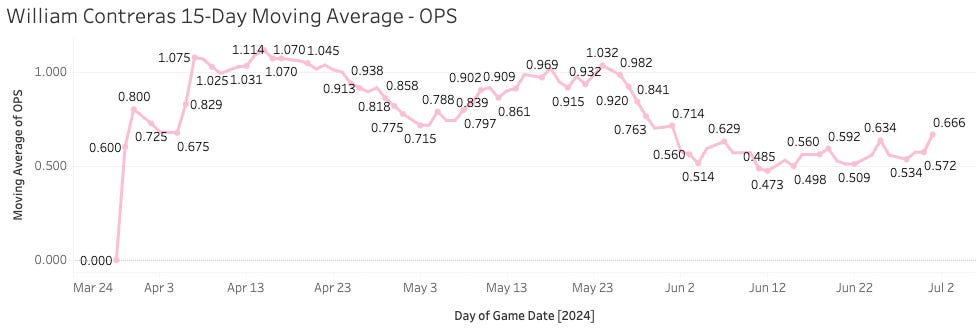 The Brewers scored seven runs last night as William Contreras finally got it going again with a couple of hits, two runs, and a homer. He had a pretty rough June, slashing .218/.248/.287 with just one homer. That was after entering the month of June with a .904 OPS and eight homers.
