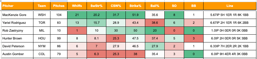 It was a big day for Gore, and that’s a nice bounce-back after his whiffs had been falling for a couple of starts there.