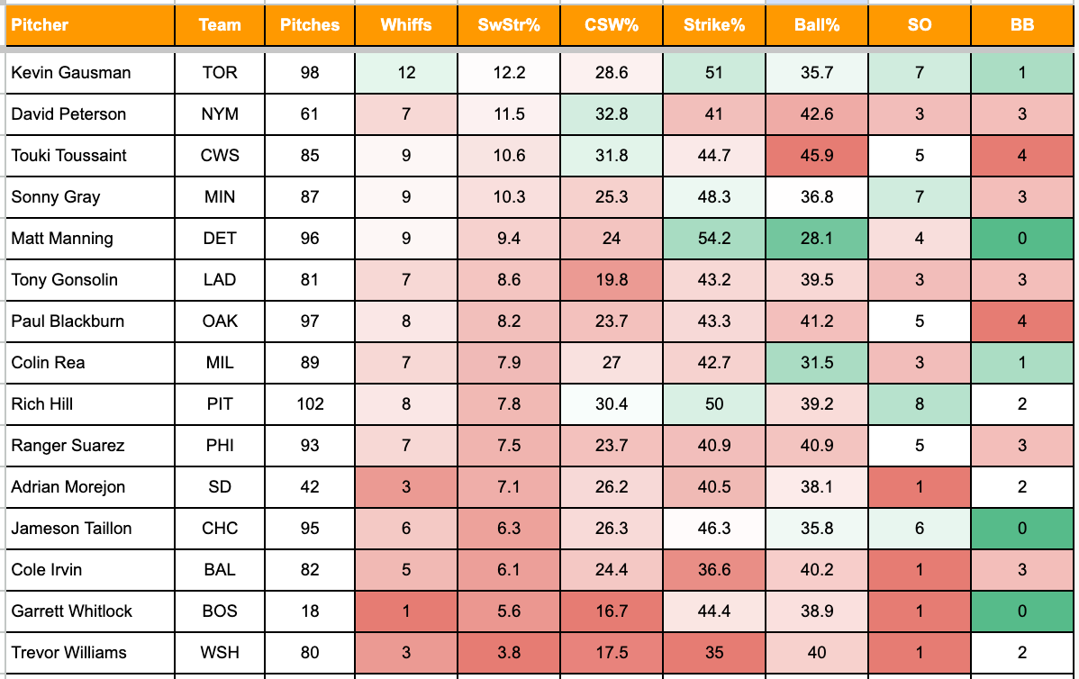 4. Nick Pivetta (BOS): 52.2 Strike%, 35.8 Ball%