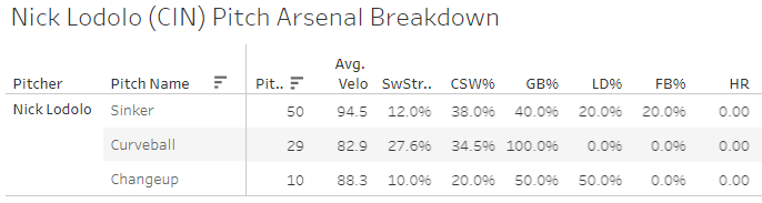 2. Nick Lodolo (CIN): 16.9 SwStr%, 34.8 CSW%