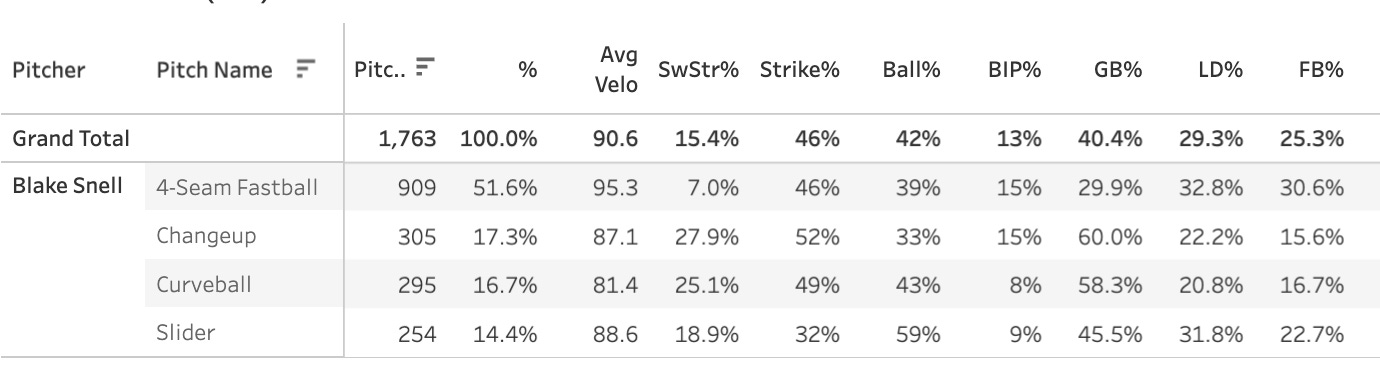 4. Blake Snell (SD): 51.4 Strike%, 41.9 Ball%