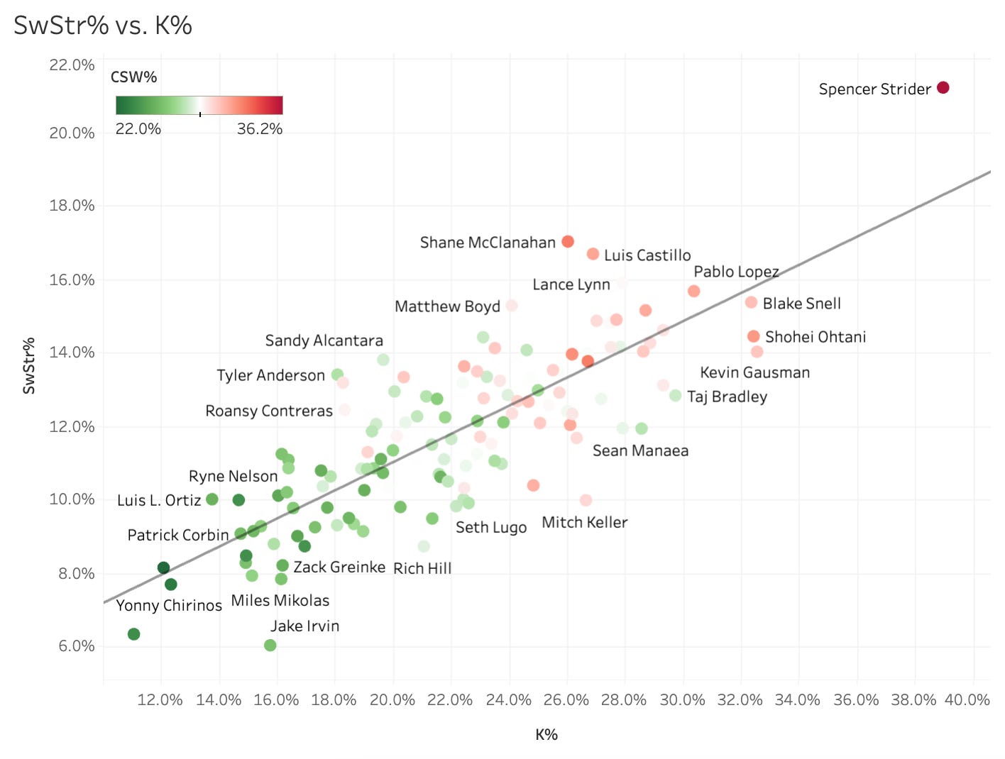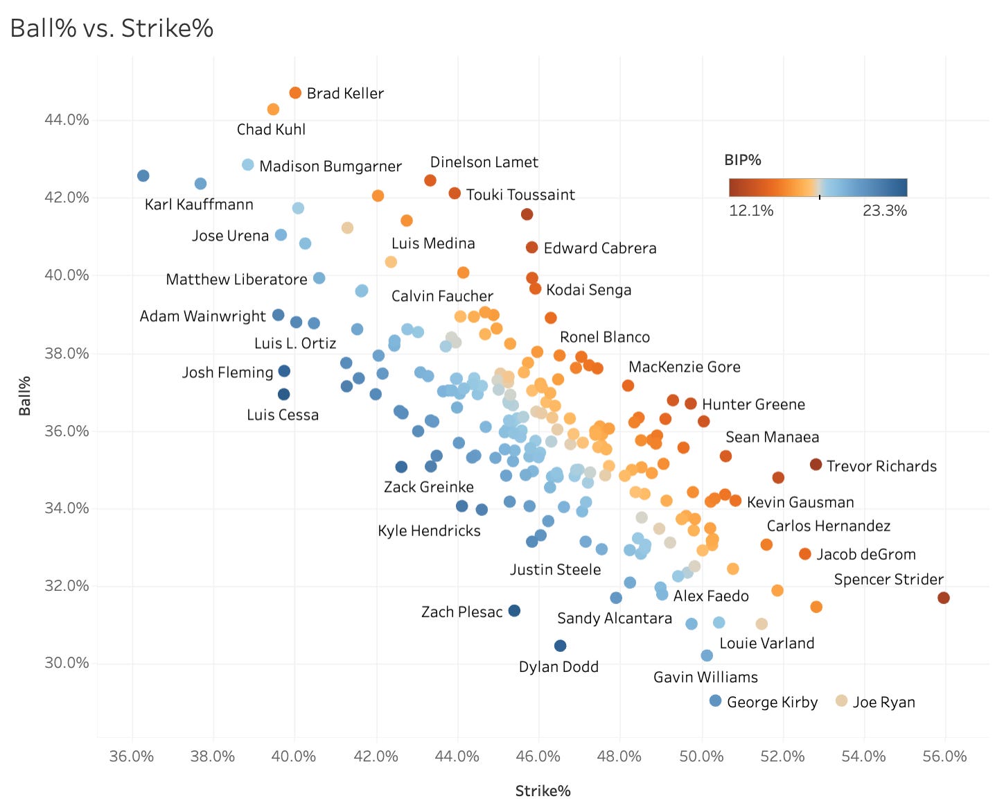 1. Spencer Strider (ATL): 57.7 Strike%, 30.8 Ball%