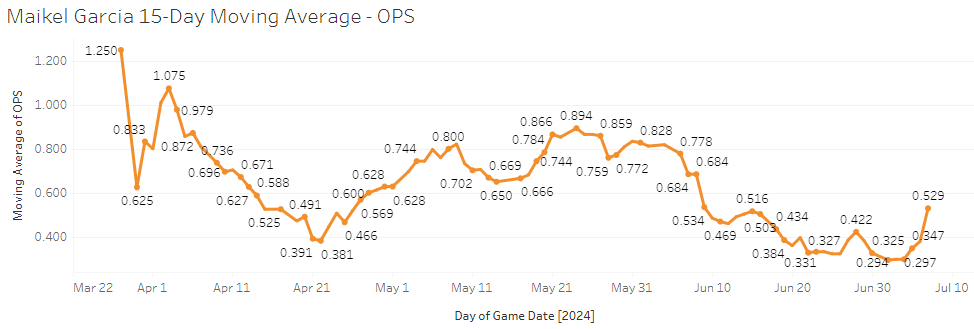 Same story with Maikel Garcia. Everybody was real pumped about him in April, but it’s been pretty terrible since early on.