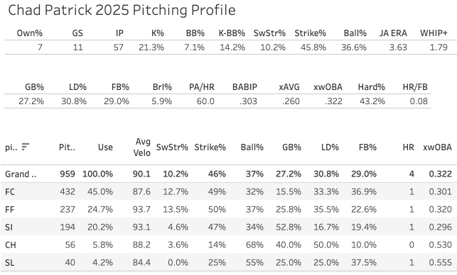 I wanted to also make a note about Chad Patrick. He’s a Brewers arm who has taken a spot in the Brewers rotation and put up some competitive numbers, something the Brew Crew really needed coming into this year.