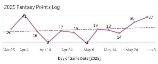 → 2025: .216 xBA, .282 xwOBA, 30% K%, 10% BB%