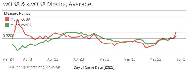 → 2024: .212 xBA, .266 xwOBA, 28% K%, 5% BB%