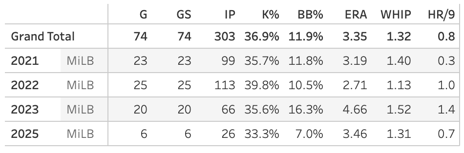 Cam Schlittler (AA - NYY) 48 IP 21.0% K-BB