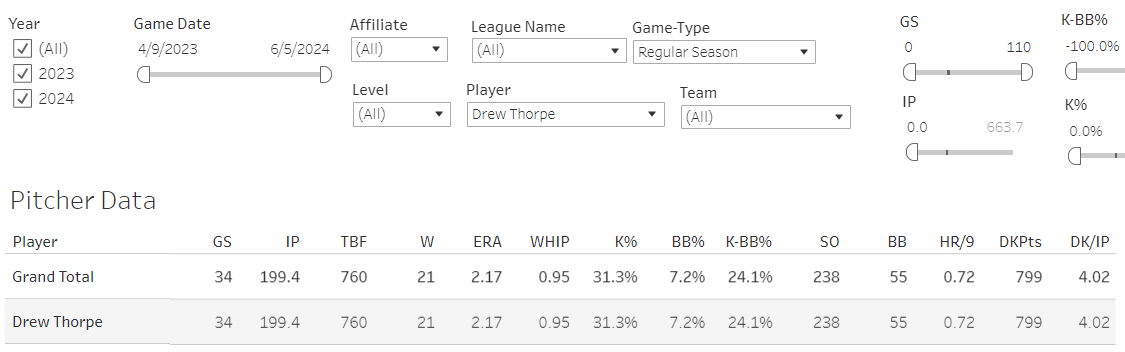 Not having fastball velo is a big obstacle to overcome though, so the floor is very low with him for 2024.