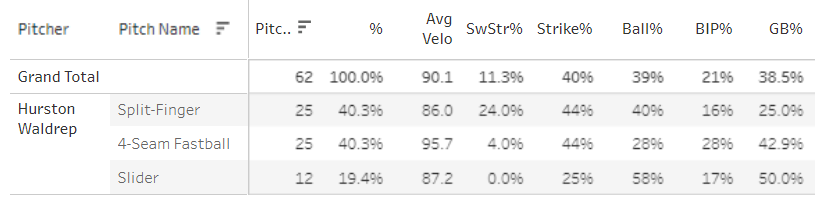 Ryan Weathers - 86 TBF, 61.5% GB%