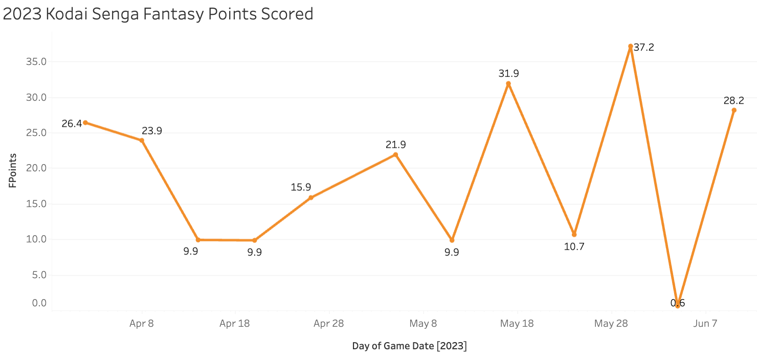 1. Kodai Senga (vs. PIT): 28.15 Points