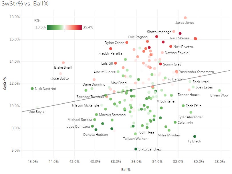 4. Jesus Luzardo (MIA): 50.5 Strike%, 31.9 Ball%