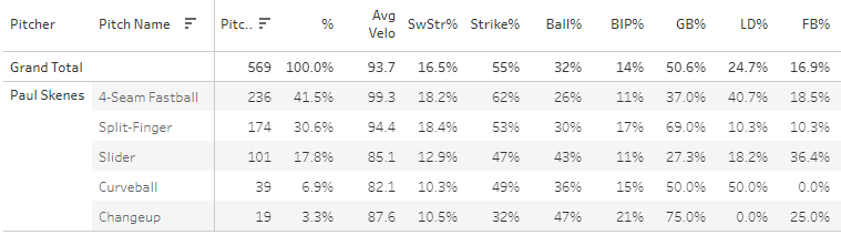 Paul Skenes's CU usage (19.4%) up 12.5 points