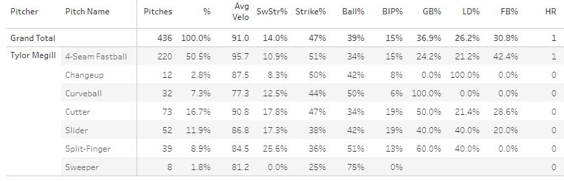 Tylor Megill's FC usage (28.7%) up 26.0 points
